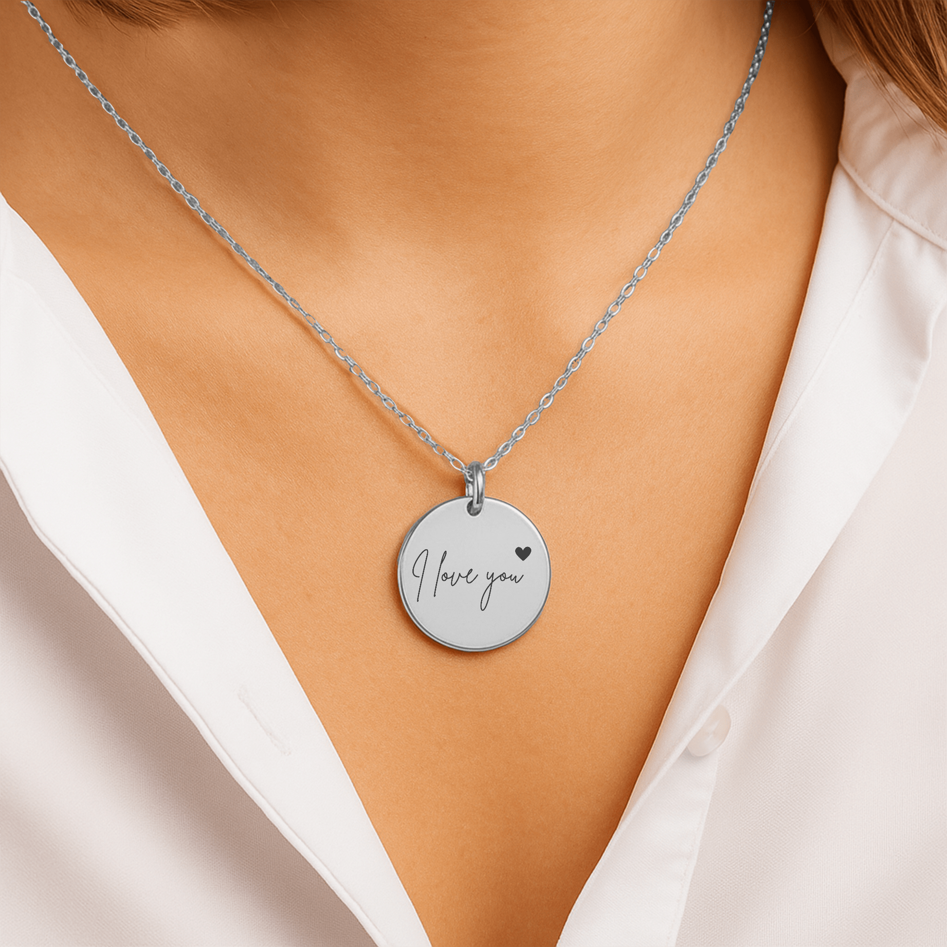 ✨ Round Pendant Necklace – “I Love You”