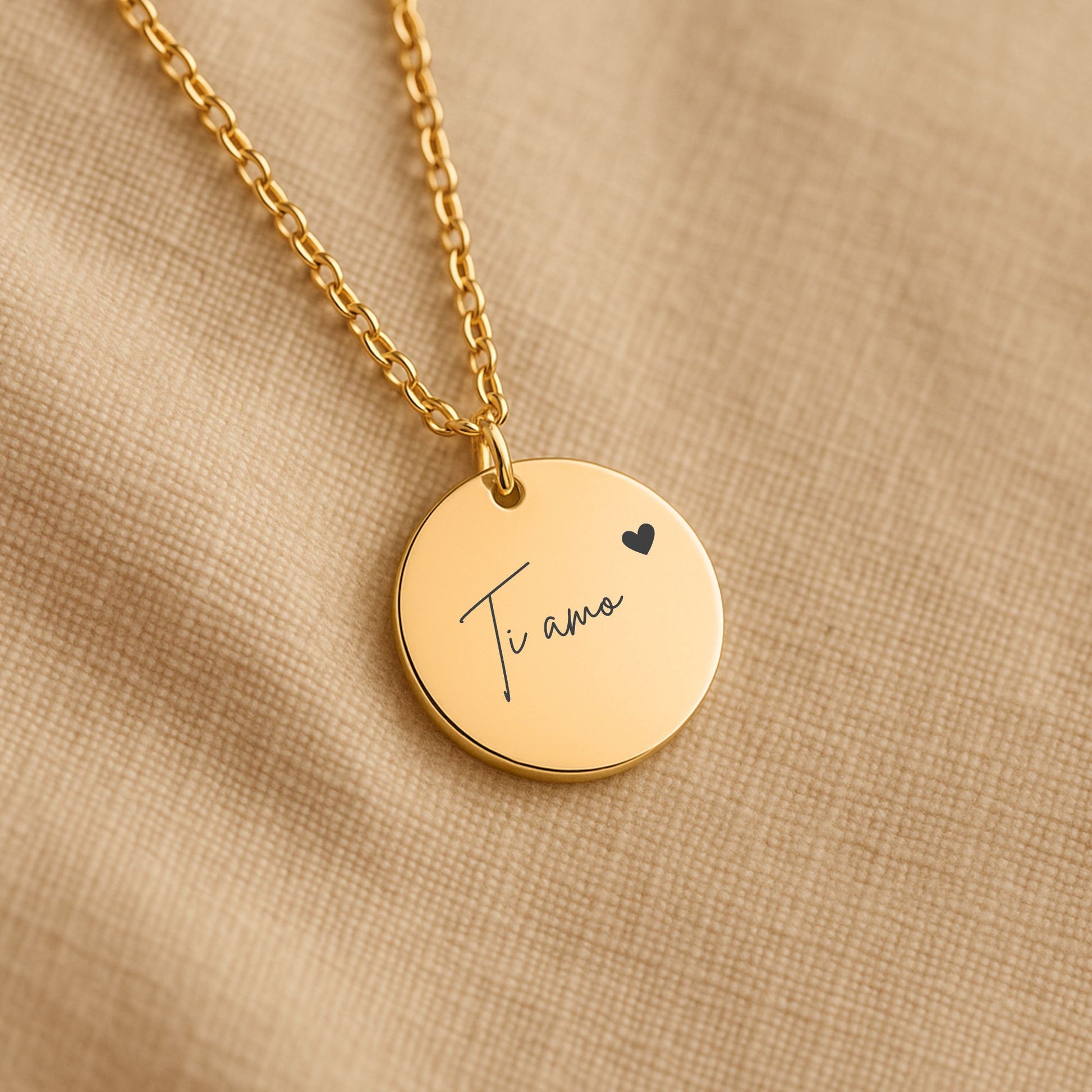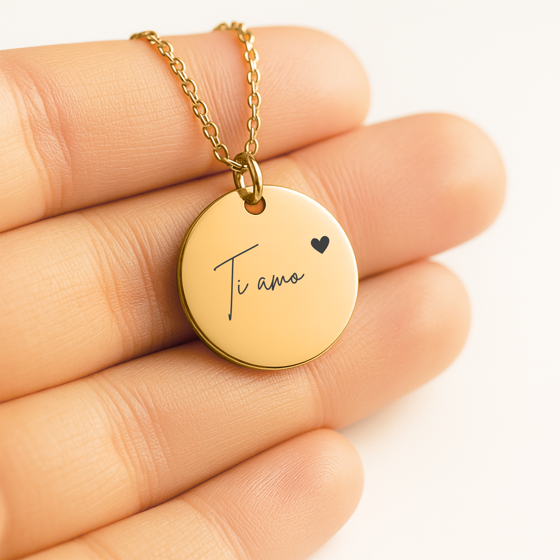 This delicate necklace features a clean and elegant engraving: “Ti amo” 💛